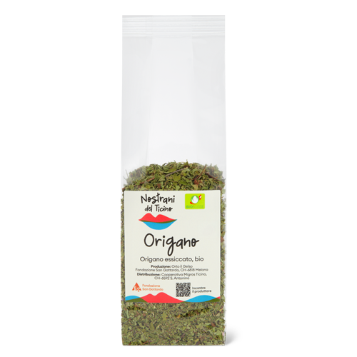 Un ingrediente che non può mai mancare in cucina: l’origano bio essicato ticinese, un prodotto della Fondazione San Gottardo di Melano. 20 g